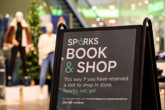 玛莎百货都集中在利用数码解决方案,以确保社会距离保持队列是最小化。火花书&商店是住在英国玛莎百货商店所以客户可以书适合他们的一次购物,超过175000个插槽由客户已经订了。客户也可以跳过队列在任何存储使用移动支付去——玛莎百货是第一大零售商完全推出这个技术。